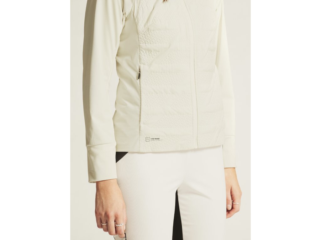 Materiál: Svrchní vrstva - 100% polyester, rukávy - 100% recyklovaný polyester, spodní vrstva - 88% recyklovaný polyester, 12% elastan; Podšívka - 100% recyklovaný polyester