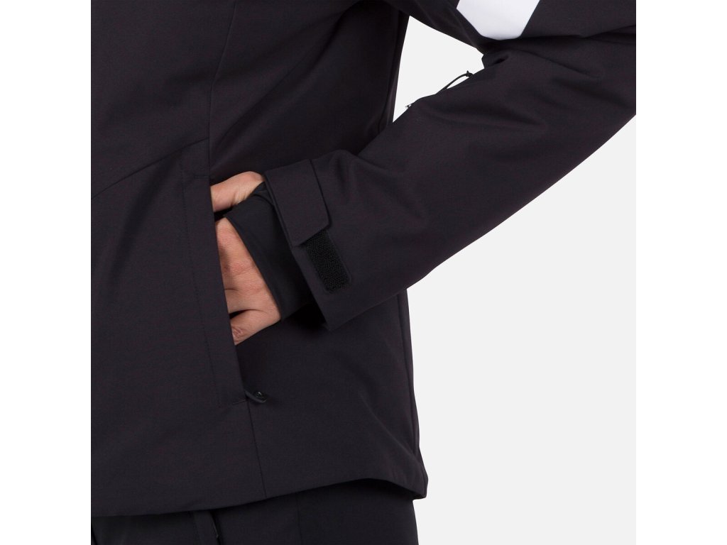 Prvky navrhnuté pre lyžiarov, ako je snehový pás, nastaviteľné manžety a vrecko na permanentku, zabezpečujú hladké lyžiarske dni.