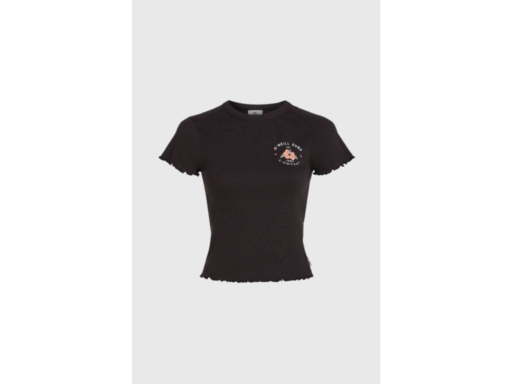 Rebrované tričko O'Neill má okrúhly výstrih, krátke rukávy a jemné šalátové lemy pre ženský vzhľad.