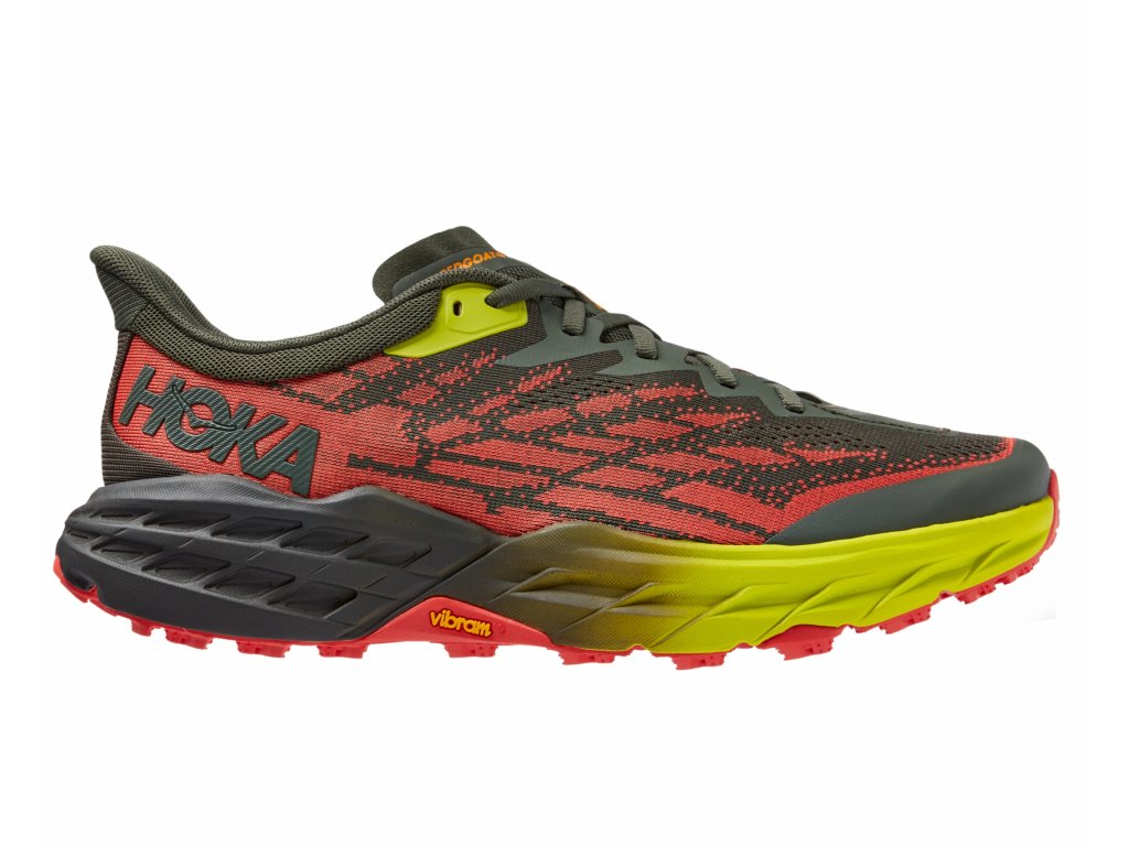 Pánske trailové bežecké topánky HOKA Speedgoat 5 WIDE poskytujú ešte lepšiu priľnavosť, pruženie a stabilitu v technickom horskom teréne.