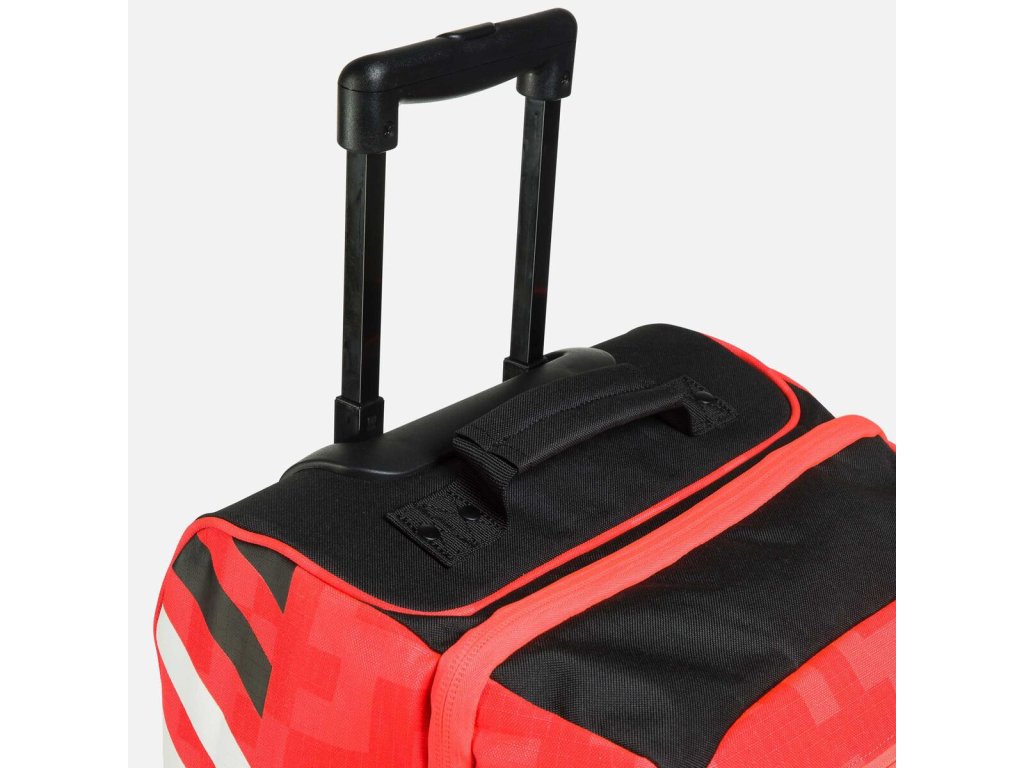 Cestovná taška Rossignol Hero Cabin Bag, vyrobená tak, aby zvládla neustále požiadavky pretekov Svetového pohára, je odolná cestovná taška na kolieskach určená na cestovanie lietadlom.